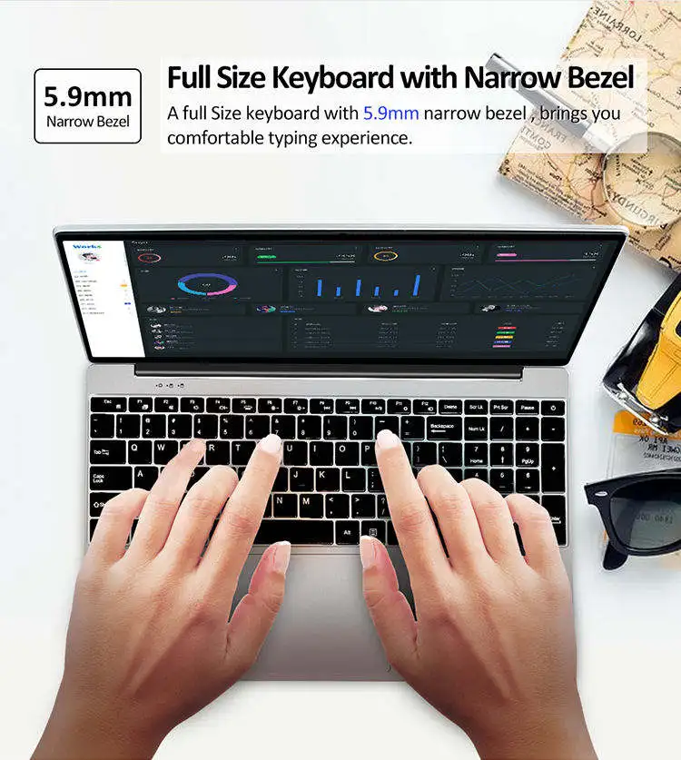 2025 15.6″ Laptop Computer 16GB RAM 512GB SSD Intel Celeron N5095 FHD IPS Display Fingerprint Wi-Fi 5 Windows 10/11 English