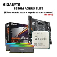 GA AMD B550M AORUS ELITE Motherboard + AMD R5 5600G CPU + Asgard W2 series DDR4 16G (8G*2) 3200 MHz RGB RAMs Suit Socket AM4