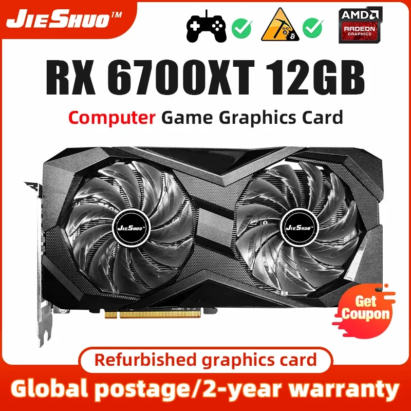 JIESHUO AMD RX 6700XT 12G Video Graphics Card GPU Gddr6 192-Bit rx6700xt 12gb Supports Computer Desktop Games Office RX6700 XT