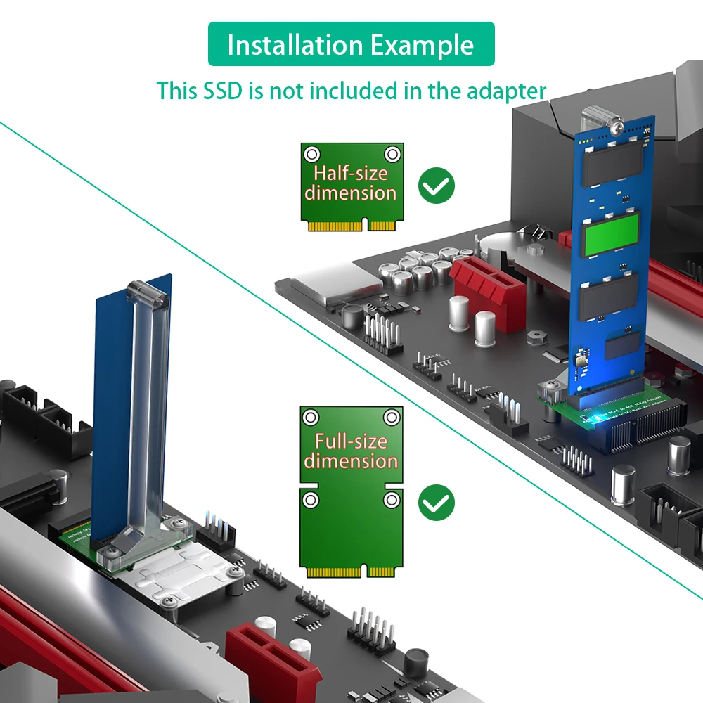 M.2 NGFF Nvme SSD/ B+M Key SATA Bus SSD to Mini PCI-E Adapter (Vertical Installation) for 2280 Type SSD