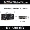 MZOW Graphics Card AMD Radeon RX 580 8G GDDR5 256Bit 2048SP PCI Express 3.0 ×16 GPU Computer Gaming RX 580 8GB placa de video