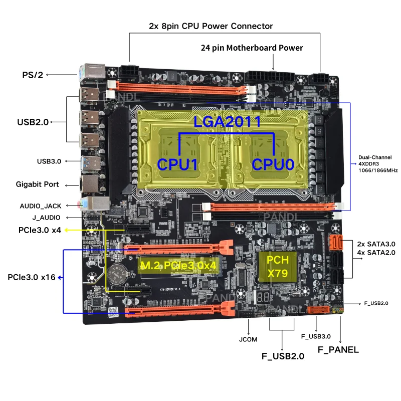 NEW Desktop Dual X79 Mainboard Supports Intel Xeon E5 Lga2011 Socket DDR3 ECC Ram NVMe M2 SSD SATA3.0 X79 Dual CPU Motherboard