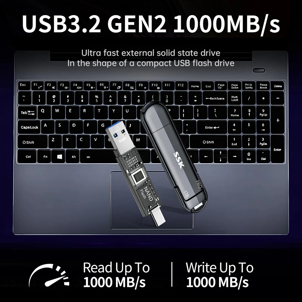 SSK 2TB Portable Solid State Disk 2TB 1TB SSD 1000MB/s High Speed Type C Flash Drives External Solid State Drives for PC Laptop