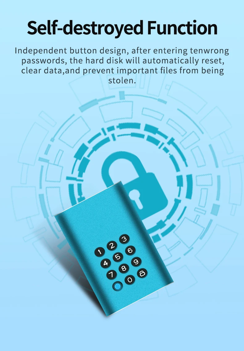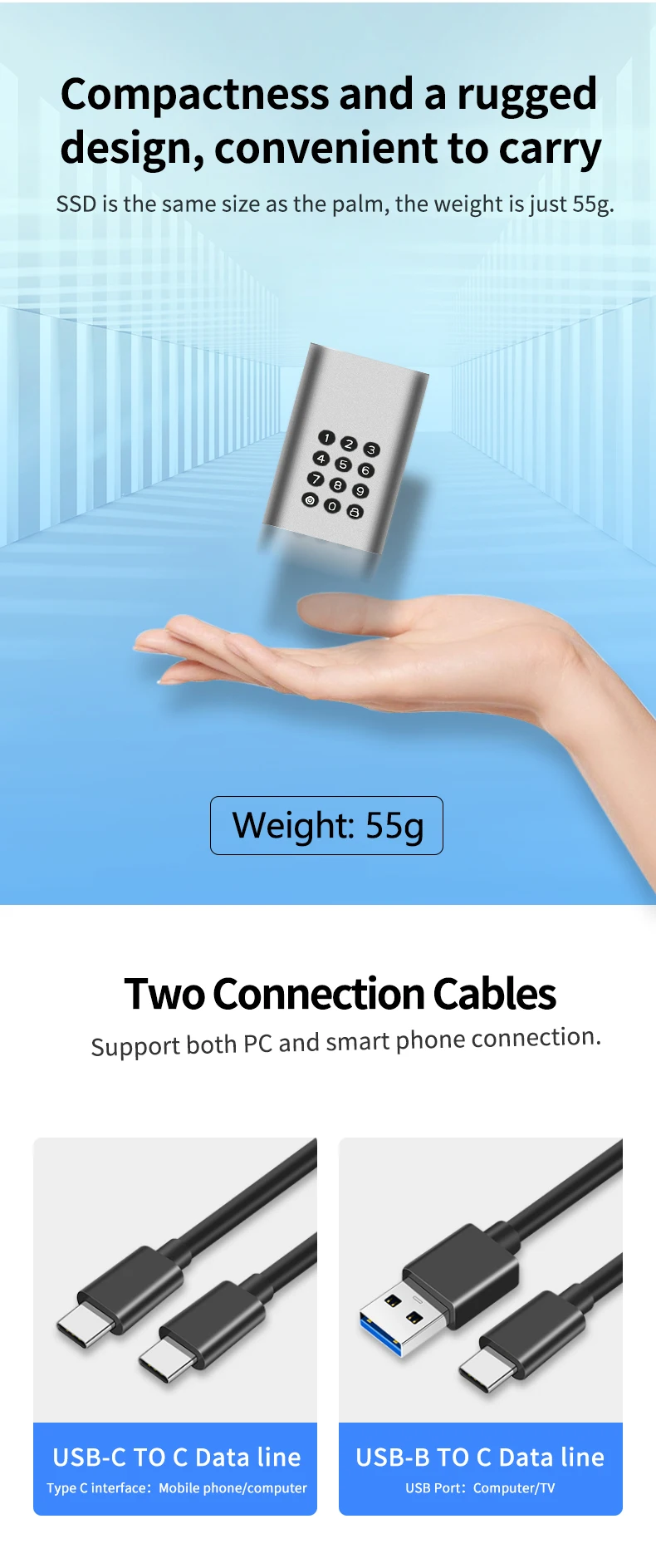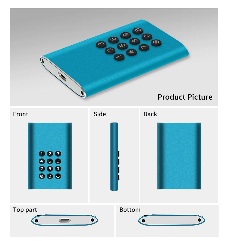 USB 3.0 Type-C Black External Storage Hard Disk SSD 256GB/512GB/1TB Capacity Dustproof Waterproof Mobile Encryption